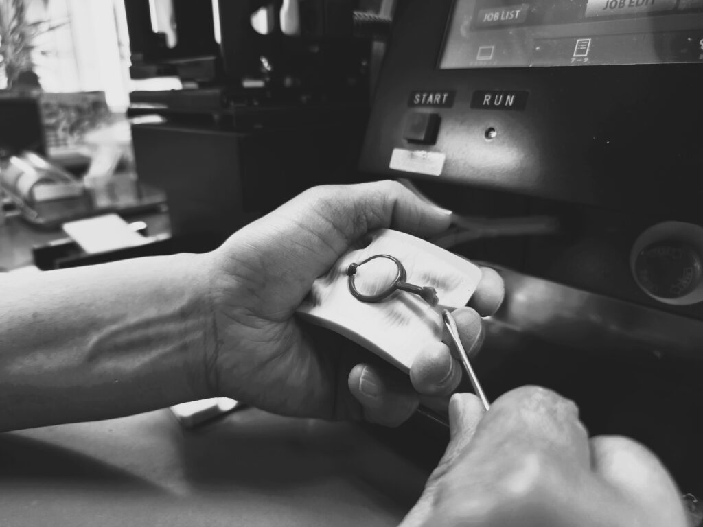 ワックスインジェクターを使用しゴム型に溶かしたワックスを射出し、鋳造用のワックス原型を作ります。このワックス原型が鋳造の基礎となります。